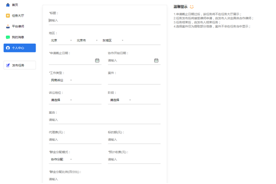 發(fā)布新的協(xié)作任務(wù),發(fā)布成功后其他律師可見。