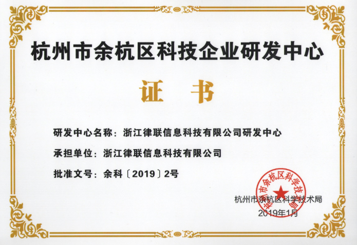 為深入實施創(chuàng)新驅(qū)動發(fā)展戰(zhàn)略,加強(qiáng)余杭區(qū)科技企業(yè)研發(fā)中心建設(shè)與管理,進(jìn)一步增強(qiáng)企業(yè)自主創(chuàng)新能力和市場競爭能力,加快推動產(chǎn)業(yè)轉(zhuǎn)型升級,根據(jù)《余杭區(qū)科技企業(yè)研發(fā)中心認(rèn)定辦法》(余科【2019】2號)文件精神,經(jīng)評審,認(rèn)定浙江律聯(lián)信息科技有限公司研發(fā)中心為余杭區(qū)科技企業(yè)研發(fā)中心。
