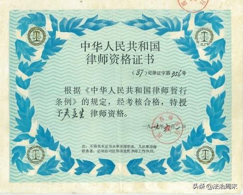 一份1989年的律師資格證。